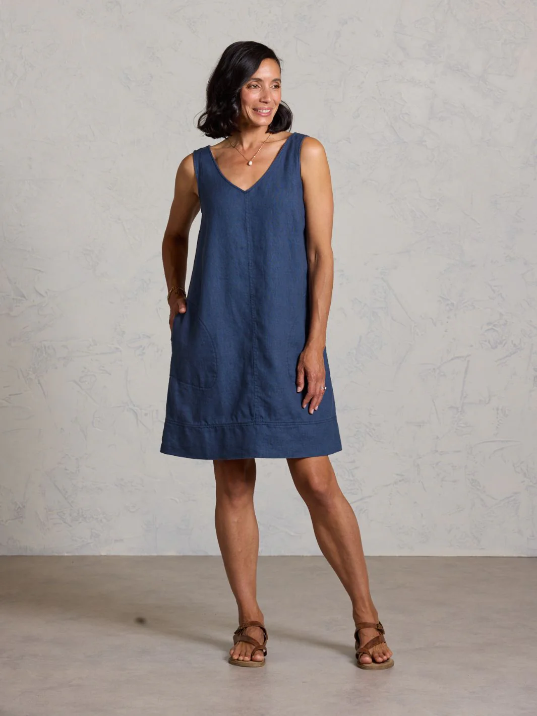 Crafted from 100% OEKO-TEX® STANDARD 100 French linen, Beachcomber reimagines the classic sleeveless shift with considered architectural details. Falling to an above-the-knee length, a defining centre seam elongates the silhouette, while a wide hemline adds weight and fluid movement. Broad, bra-friendly straps and a soft V-neckline at both the front and back complete the design, making it an effortless essential for every day and every adventure.
