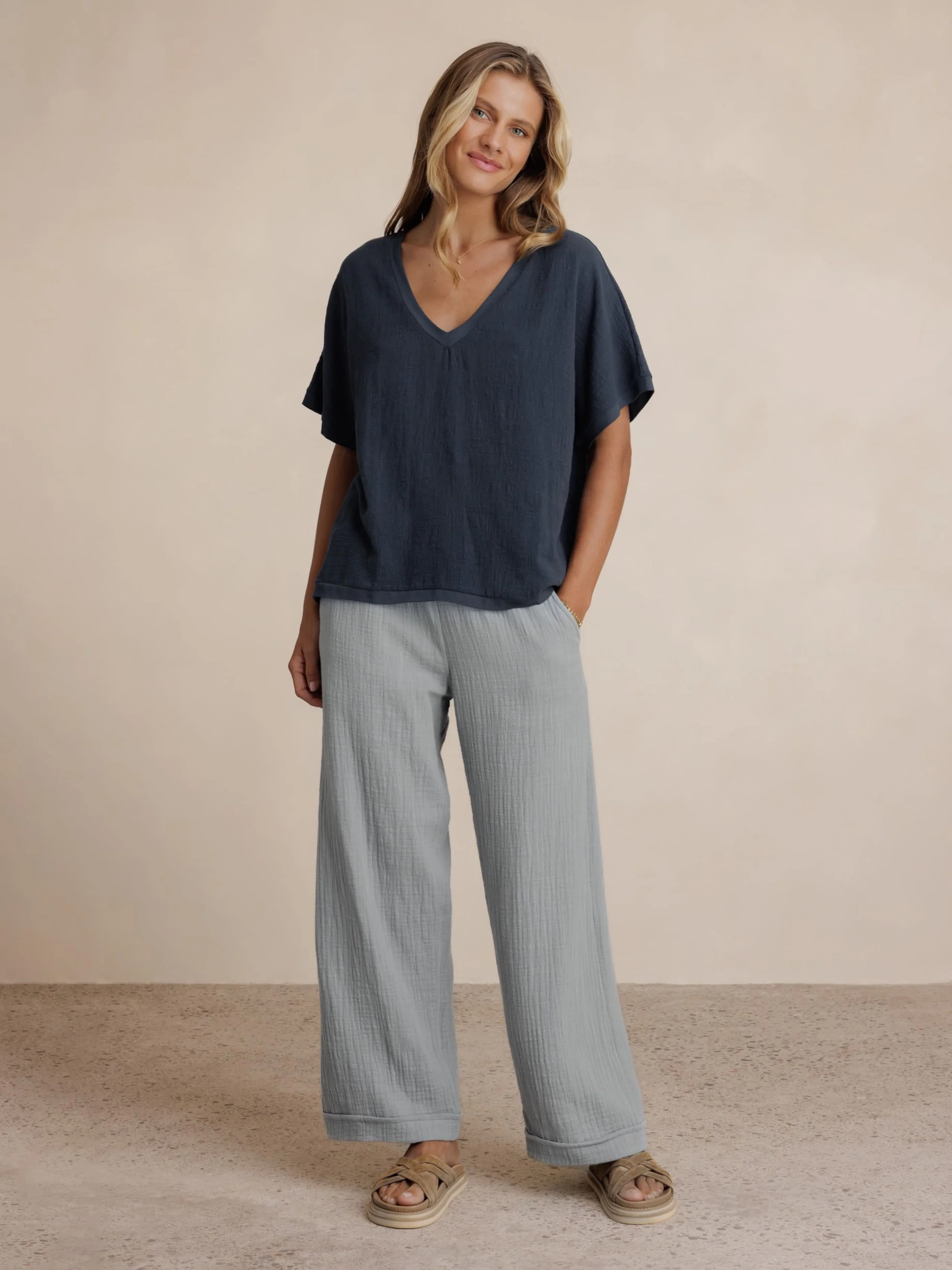 Our lightweight Montego Top is crafted from 100% textured cotton in single gauze with a cross-check slub weave. It features easy-fit kimono sleeves and a relaxed silhouette, providing effortless comfort. A versatile go-to piece that seamlessly complements your everyday wardrobe.