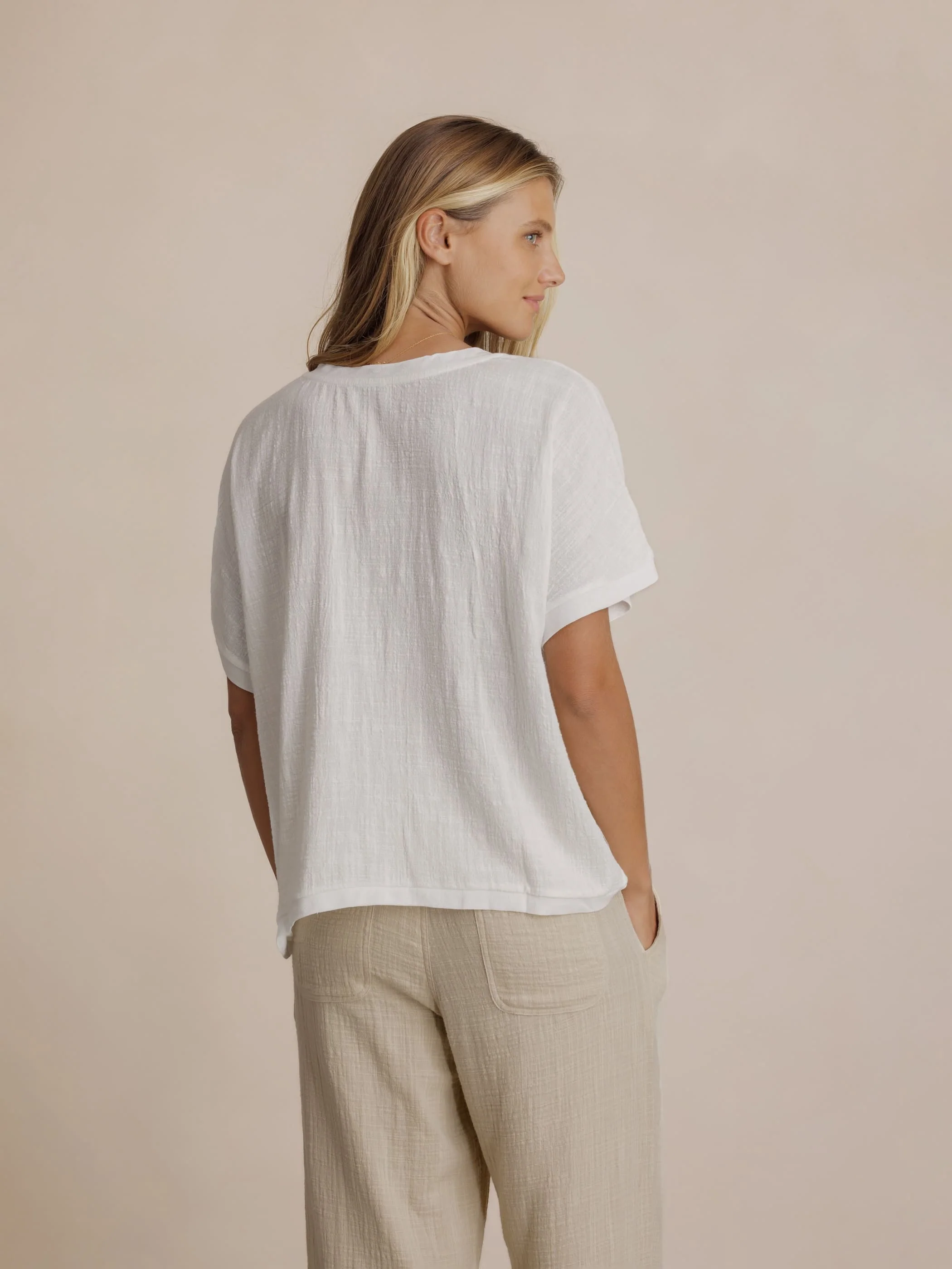 Our lightweight Montego Top is crafted from 100% textured cotton in single gauze with a cross-check slub weave. It features easy-fit kimono sleeves and a relaxed silhouette, providing effortless comfort. A versatile go-to piece that seamlessly complements your everyday wardrobe.